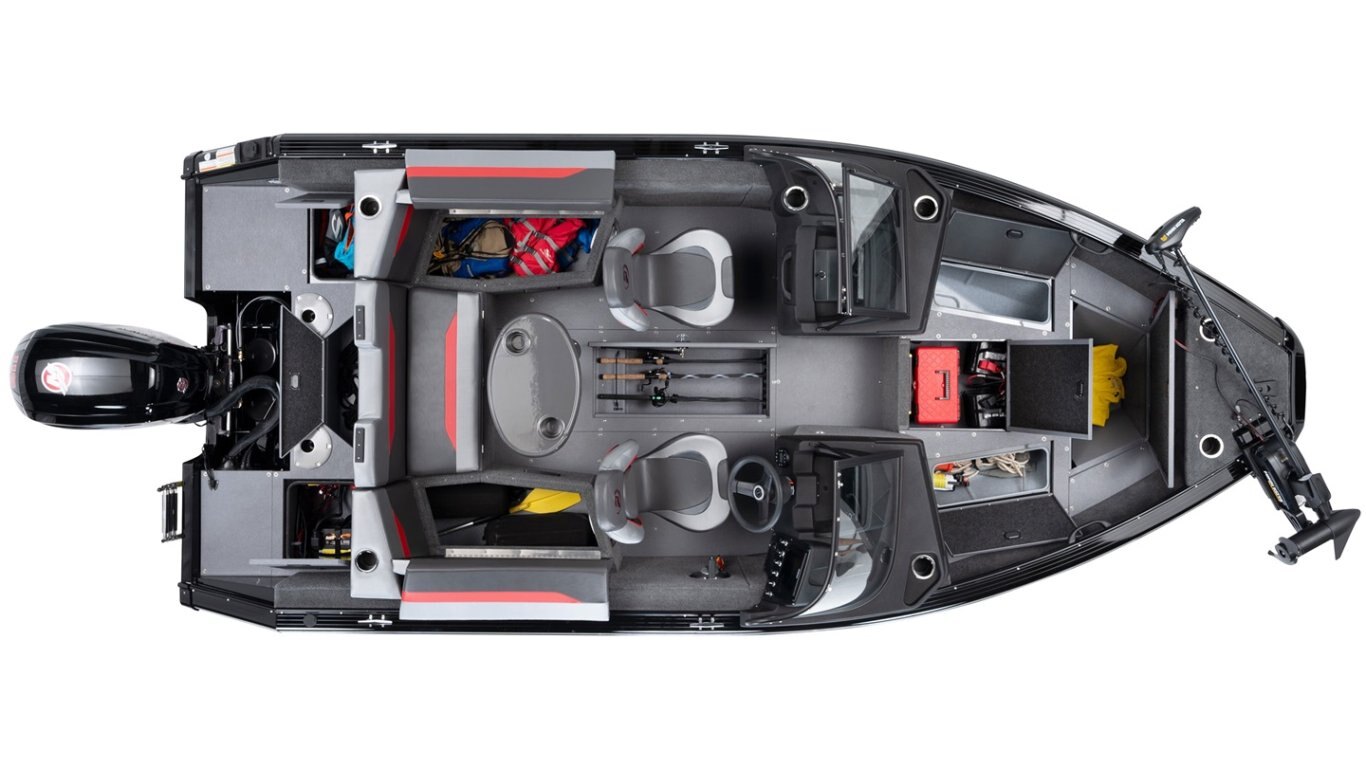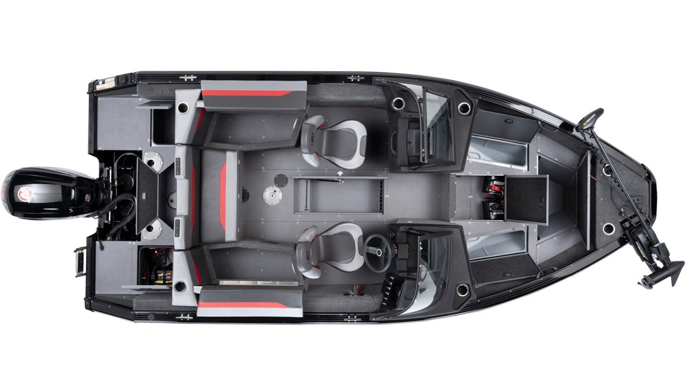 • Stern seating area with a livewell underneath (must ordered and installed at the factory) (red accent)