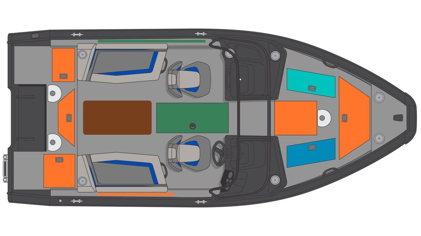 • Stern seating area with a cooler underneath (can be install by the dealer but no livewell system) (blue accent)
